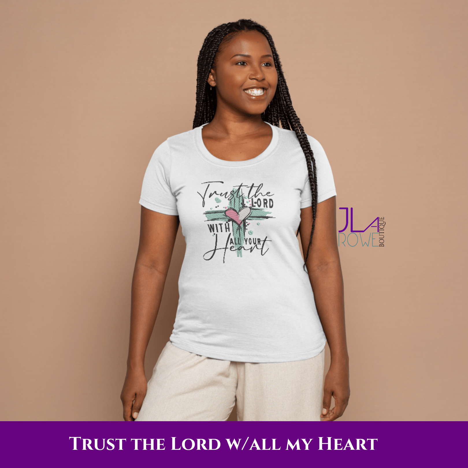 - Design: “Trust the Lord With All Your Heart” cross and heart motif